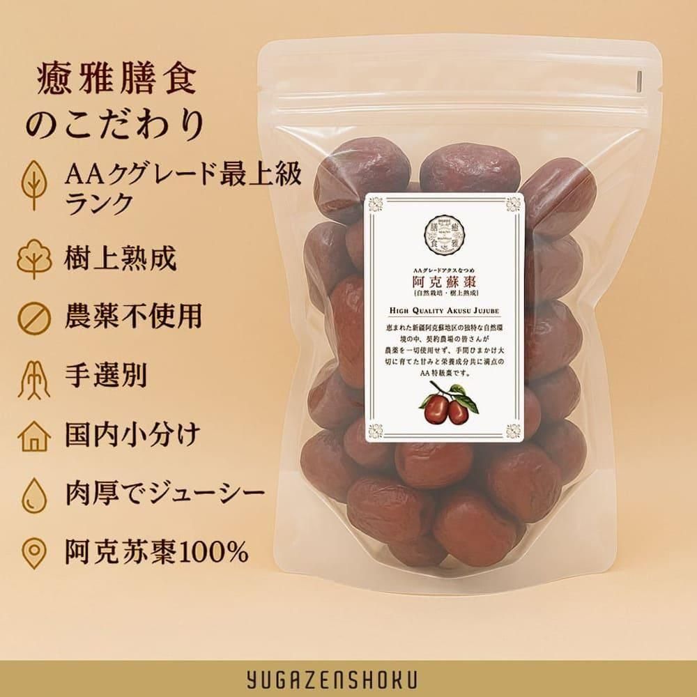 一つ一つ丁寧に選別し出荷いたします。癒雅膳食が自信を持ってお届けする「なつめ」、ぜひご賞味ください。