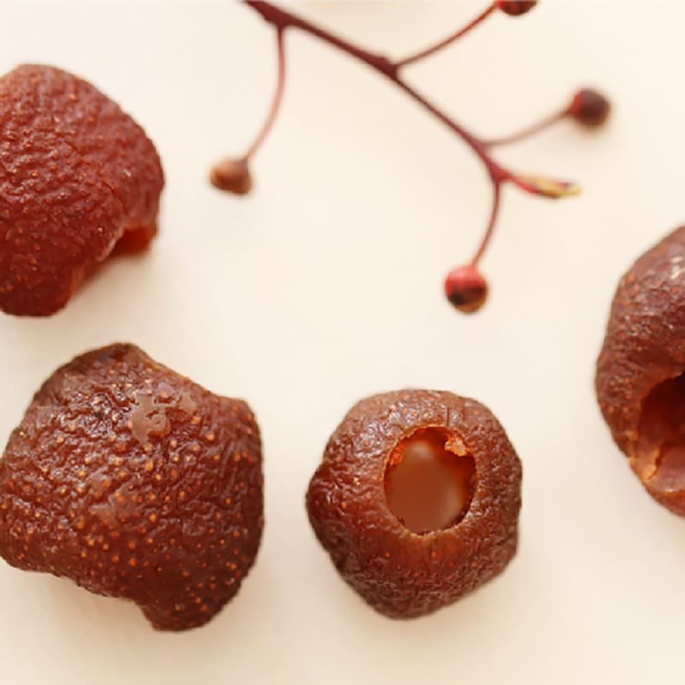 果実をまるごと乾燥。果皮から果肉まで旨みを凝縮し、素材感のあるリッチな一粒に。