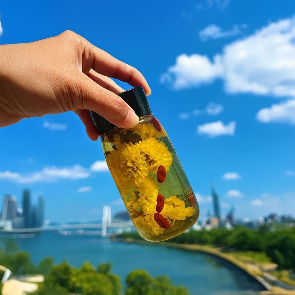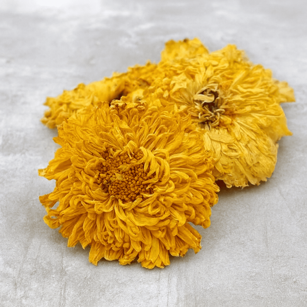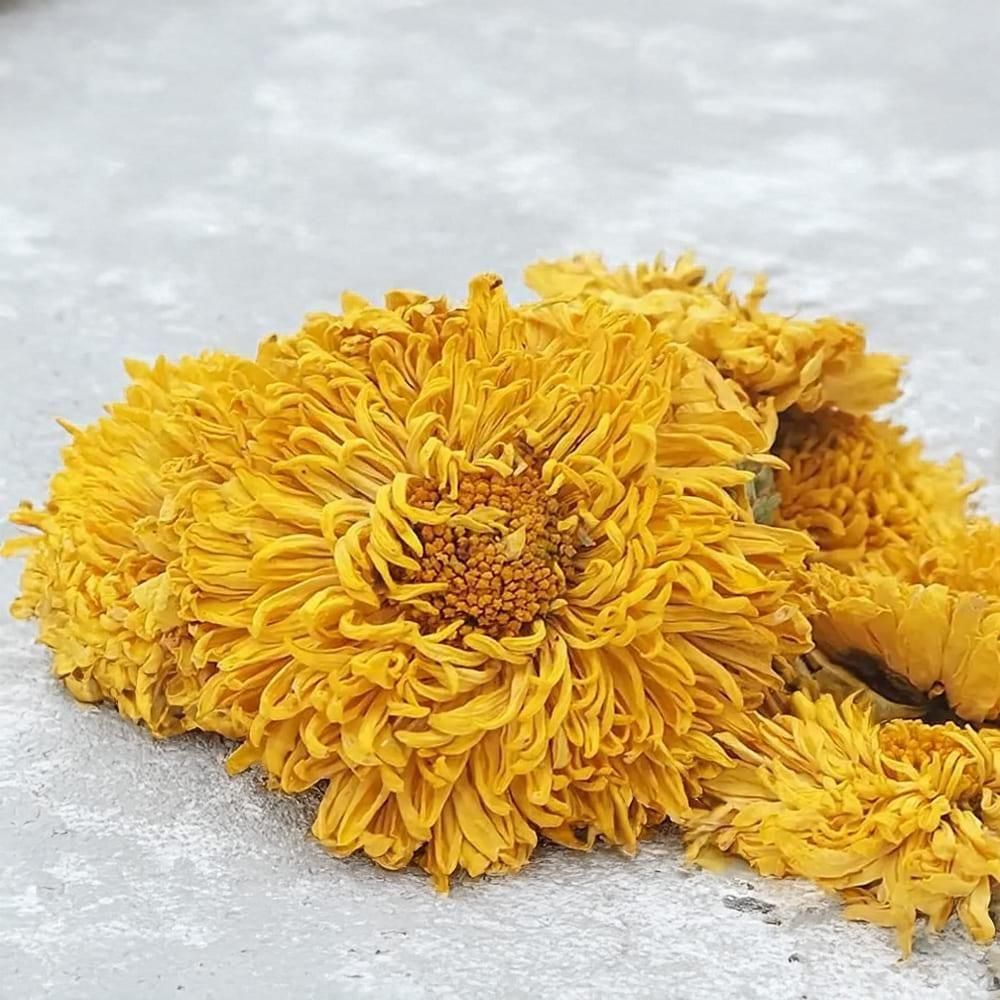 良質な徽州皇菊は、鮮やかな黄色の花びら、小ぶりで整った形、そして清らかな香りが特徴。さらに枸杞子(クコの実)、決明子(けつめいし)、柑橘類のドライフルーツを加えれば、滋養と華やかな風味が一層引き立ちます。