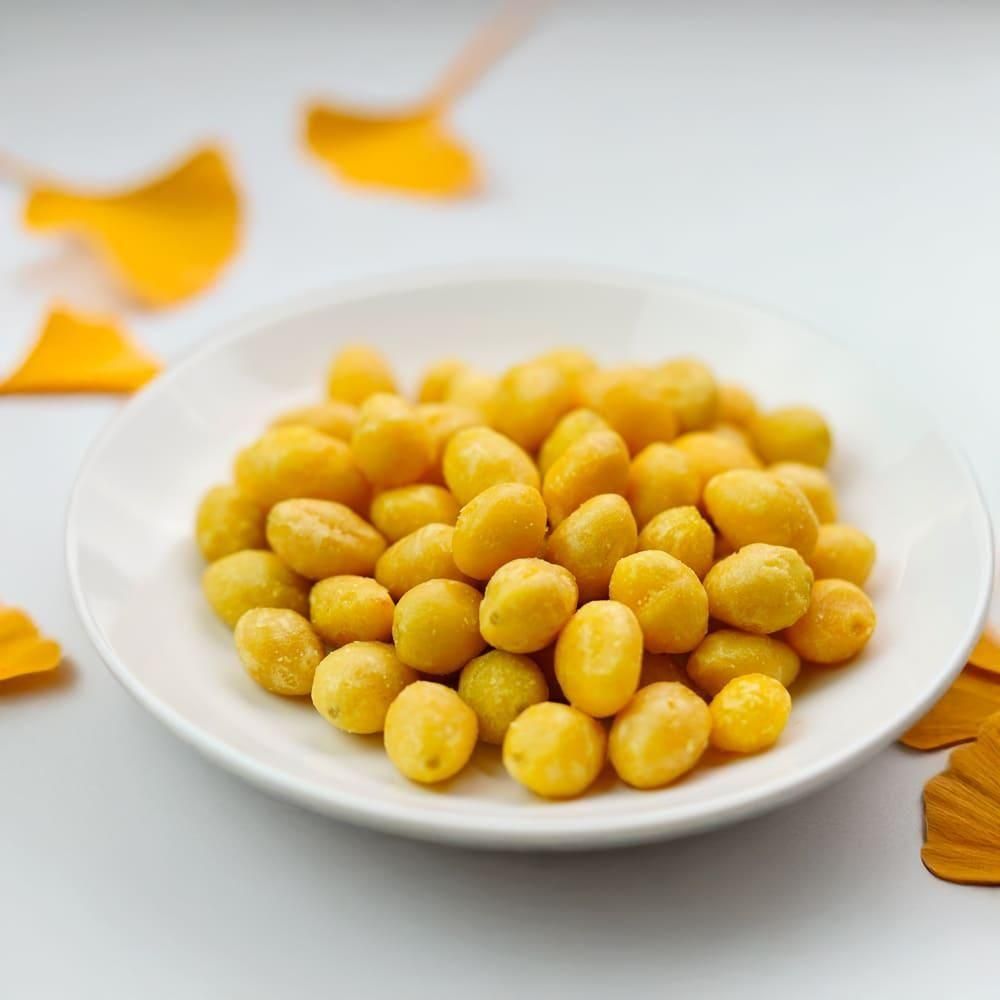 大粒の厳選された銀杏を、特製の真空低温フライ製法で調理しました。一口食べると、口の中で広がるサクサク感がクセになること間違いなし!ほんのり甘い味わいと独特のほろ苦さのバランスが絶妙で、一度食べたらやみつきになる美味しさです。